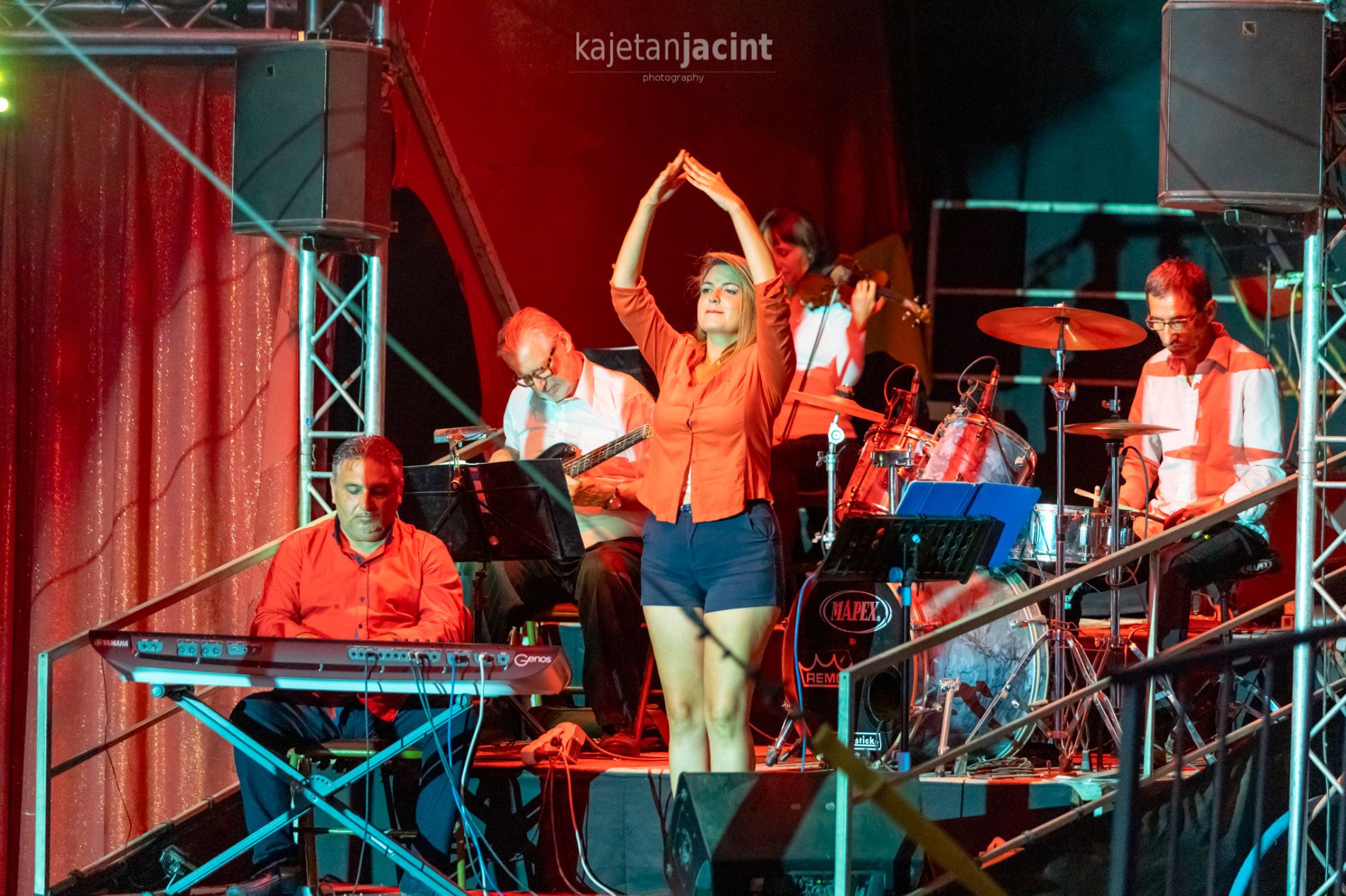 Andrea Csehországból érkezett hozzánk, levegőszámában a megszokottól eltérően egyszerű hálón mutatja be akrobatikai ügyességét. A háló nem merev, így a test folyamatosan alkalmazkodik, miközben a kéz és láb állandóan keresi a támaszpontot. A művésznő precíz fizikai alapozással dolgozik: váll- és fogáserő, statikus tartások, ismételt kontrollált esések teszik lehetővé a lenyűgöző előadást.