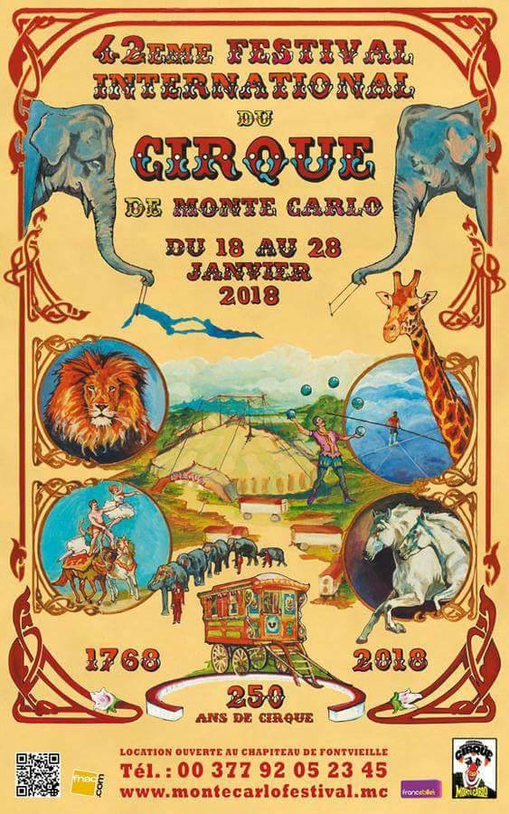 a 42. Monte-Carloi Nemzetközi Cirkuszfesztivál 2018. Január 18. - 28. között kerül megrendezésre, amely 1976 óta a cirkuszvilág legrangosabb eseménye. A rendezvényre már maga a meghívás is egy nívós elismerés az artisták számára, amennyiben Arany, Ezüst vagy Bronz Bohóc díjat nyernek, az pedig felér egy Oscar díjjal is.